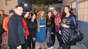 حيث اجتمع الحضور وهم الفنانين: سارة سلامة، وإيهاب فهمي وزوجته، ومنة عرفة ونهى عادل، ونجوم لبنان: غنوة محمود ودومينيك حوراني، مع المخرج جوزيف نبيل والمنتج محروس المصري، من أجل تقطيع التورتة داعين الله التوفيق والسداد.
